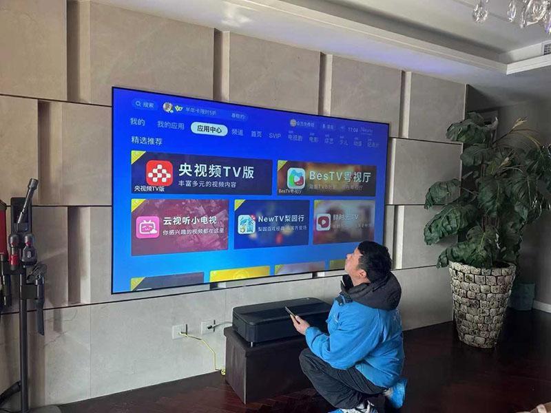 大部分的客厅能实现影院的功能,客厅的摆放元素很多,加上整体的环境光因素考虑,如投射110寸画面,建议投影幕采用抗光幕,投影采用4K 3000流明左右的投影,音响建议回音壁,占地小。简而言之,客厅作为影院的功能,主要取决于区域大小及家庭人员。